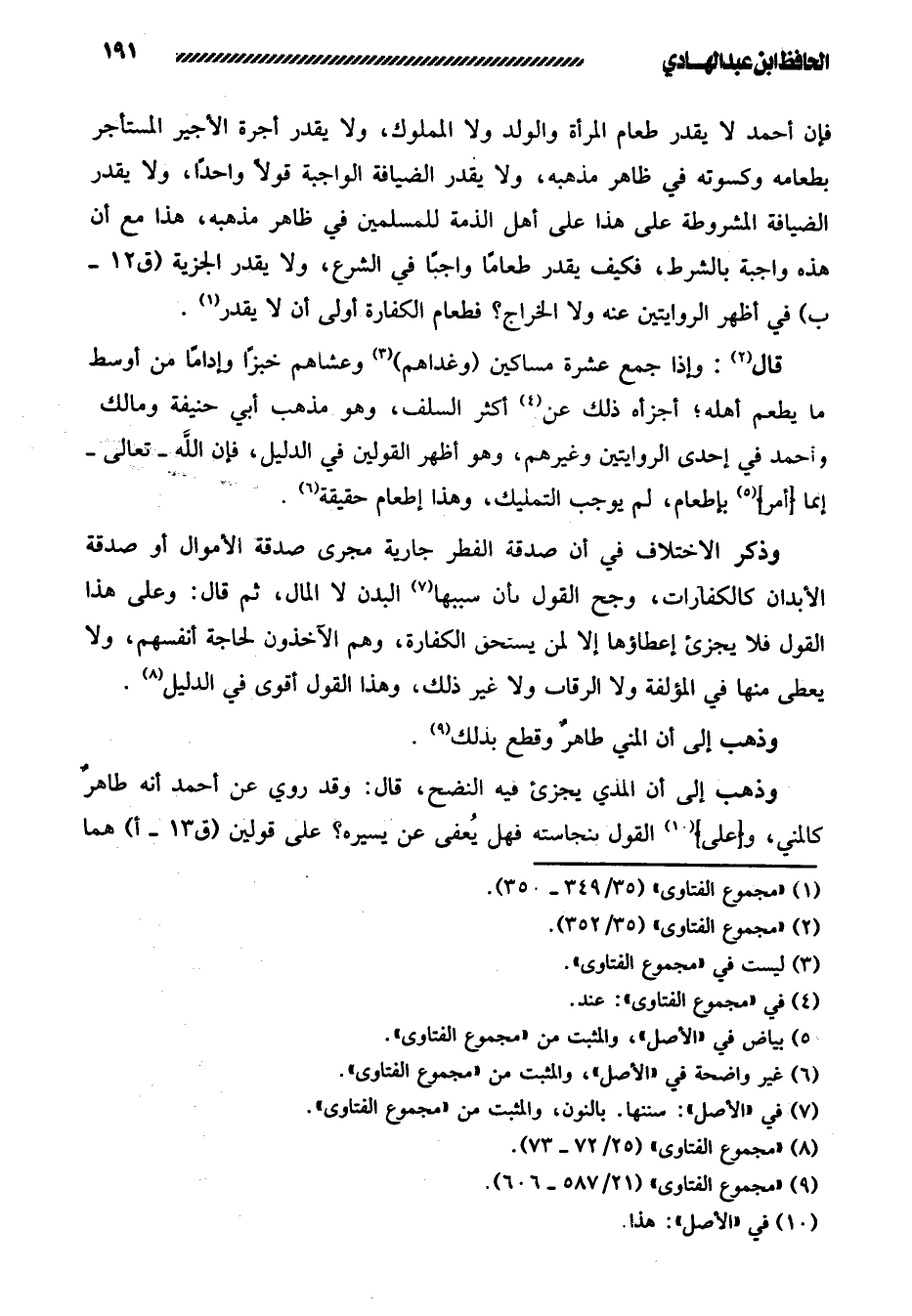 فإن أحمد لا يقدر طعام المرأة والولد ولا المملوك، ولا يقدر أجرة الأجير المستأجر بطعامه وكسوته في ظاهر مذهبه، ولا يقدر الضيافة الواجبة قولاً واحدًا، ولا يقدر الضيافة المشروطة على هذا على أهل الذمة للمسلمين في ظاهر مذهبه، هذا مع أن هذه واجبة بالشرط، فكيف يقدر طعامًا واجبًا في الشرع، ولا يقدر الجزية / في أظهر الروايتين عنه ولا الخراج؟ فطعام الكفارة أولى أن لا يقدر.