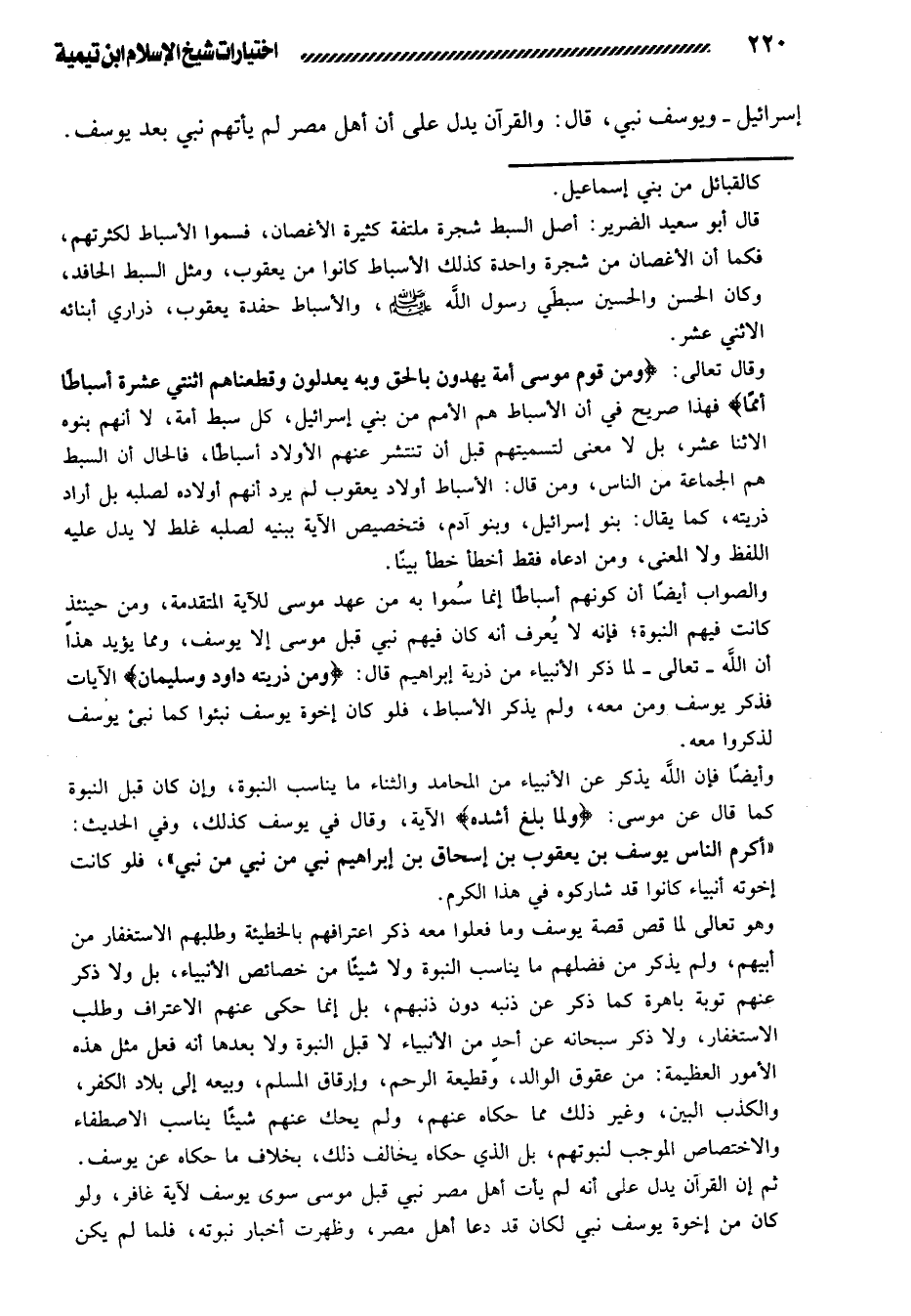 إسرائيل - ويوسف نبي، قال: والقرآن يدل على أن أهل مصر لم يأتهم نبي بعد يوسف.