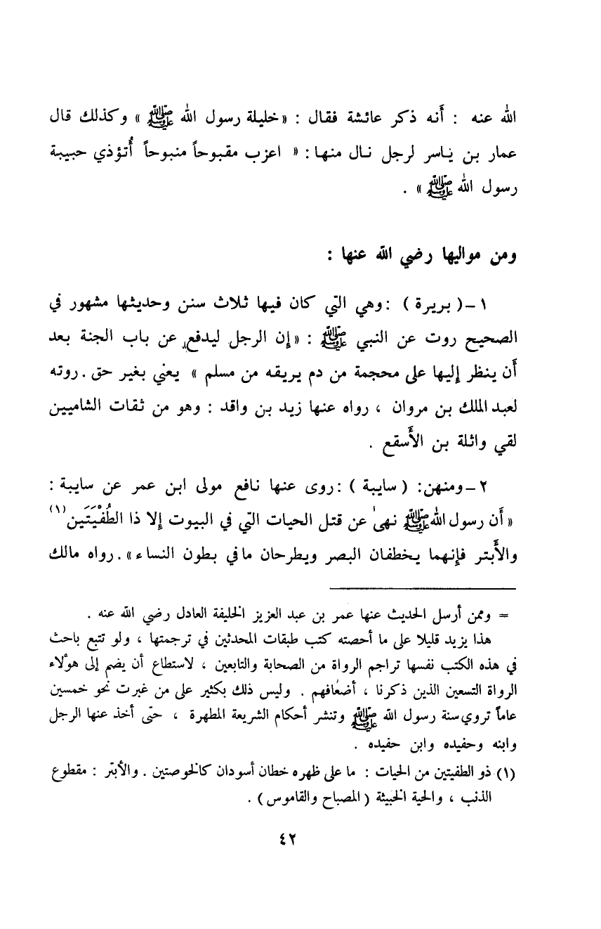 1 - بَرِيْرَةُ: وَهِيَ الَّتِيْ كَانَ فِيْهَا ثَلَاثُ سُنَنٍ. وَحَدِيْثُهَا مَشْهُوْرٌ فِي الصَّحِيْحِ.