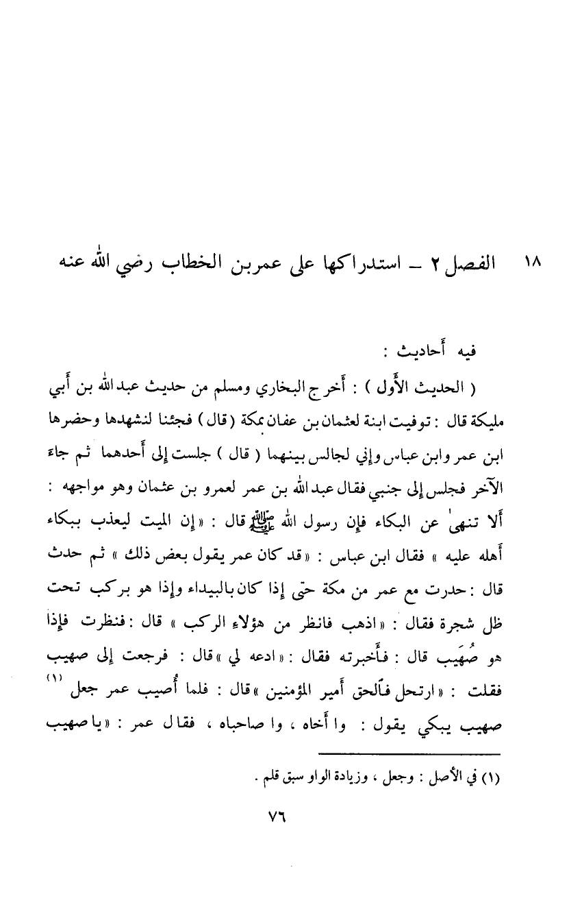 18/الْفَصْلُ [الثَّانِيْ:] اسْتِدْرَاكُهَا عَلَى عُمَرَ بْنِ الْخَطَّابِ رَضِيَ اللهُ عَنْهُ