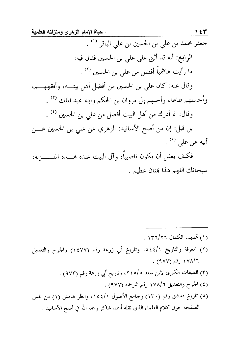الرابع: أنه قد أثنى على علي بن الحسين فقال فيه: "ما رأيت هاشمياً أفضل من علي بن الحسين"2.