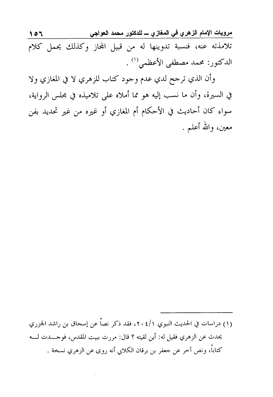 وأن الذي ترجح لدي عدم وجود كتاب للزهري لا في المغازي ولا في السيرة، وأن ما نسب إليه هو مما أملاه على تلاميذه في مجلس الرواية، سواء كان أحاديث في الأحكام أم المغازي أو غيره من غير تحديد بفن معين، والله أعلم.