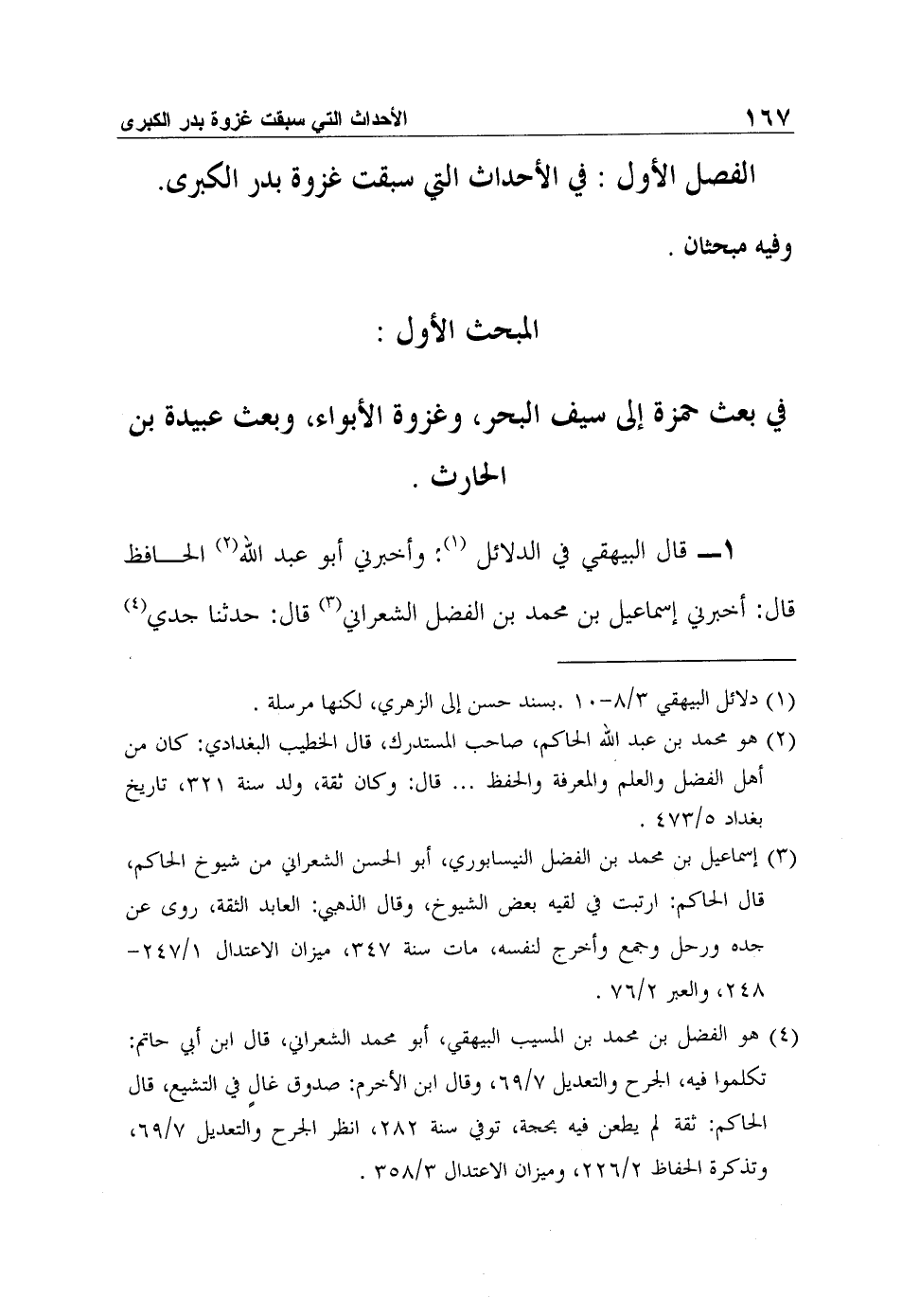 1ـ قال البيهقي في الدلائل1: وأخبرني أبو عبد الله2 الحافظ قال: أخبرني إسماعيل بن محمد بن الفضل الشعراني3 قال: حدثنا جدي4