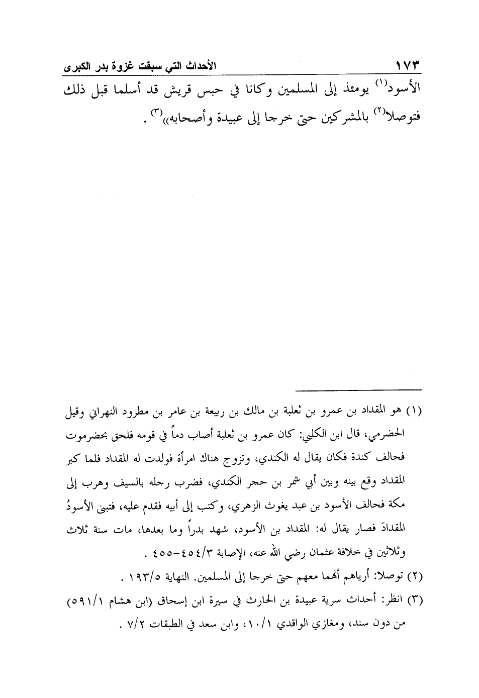 3 انظر: أحداث سرية عبيدة بن الحارث في سيرة ابن إسحاق (ابن هشام 1/591) من دون سند، ومغازي الواقدي 1/10، وابن سعد في الطبقات 2/7.
