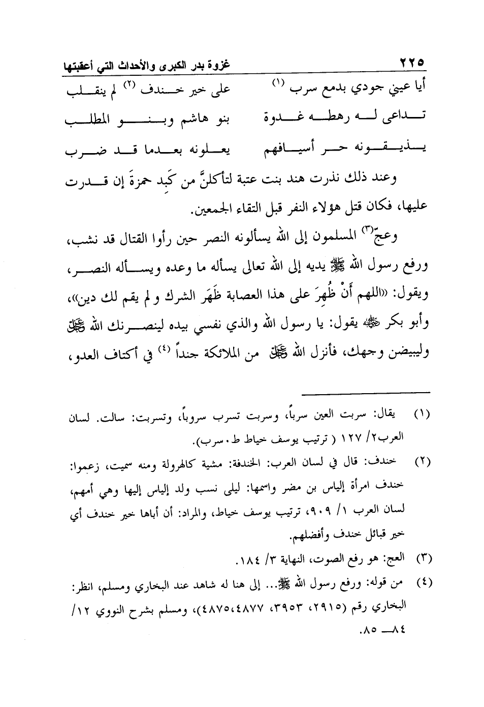 4 من قوله: ورفع رسول الله صلى الله عليه وسلم ... إلى هنا له شاهد عند البخاري ومسلم، انظر: البخاري رقم (2915، 3953، 4875، 4877) ، ومسلم بشرح النووي 12/ 84- 85.