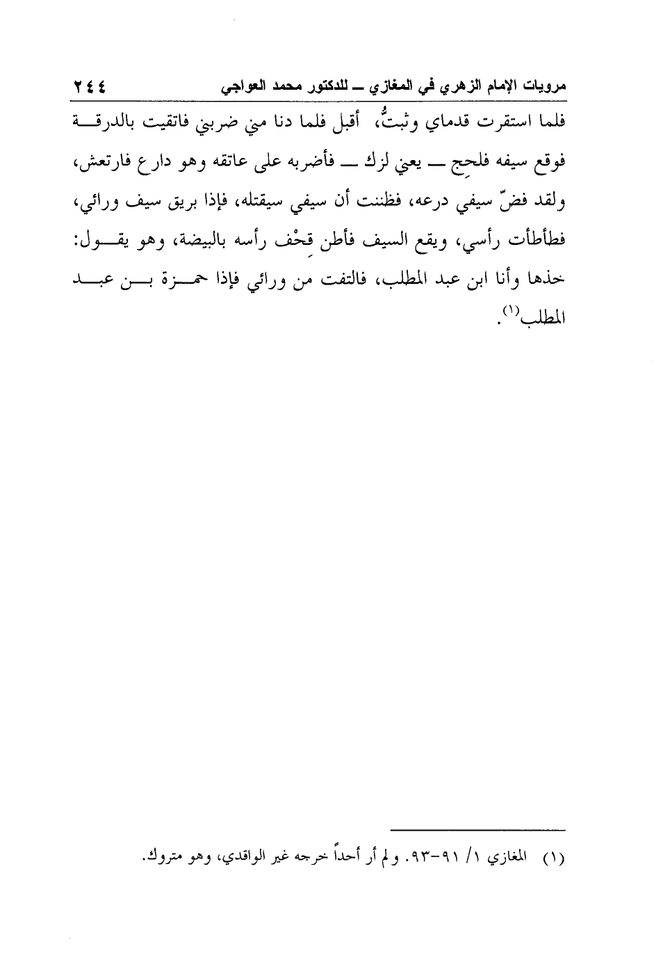 1 المغازي 1/ 91-93. ولم أر أحداً خرجه غير الواقدي، وهو متروك.
