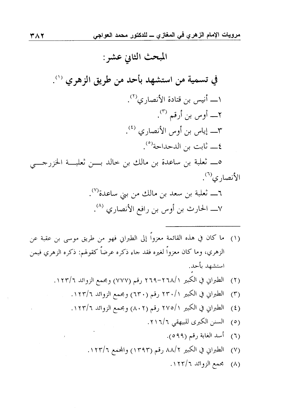 المبحث الثاني عشر: في تسمية من استشهد بأحد من طريق الزهري1.