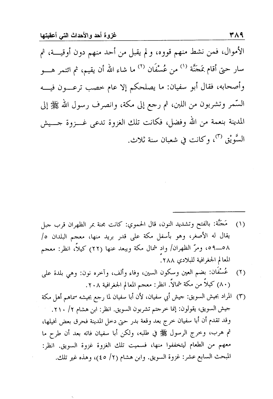3 المراد بجيش السويق: جيش أبي سفيان، لأن أبا سفيان لما رجع بجيشه سماهم أهل مكة جيش السويق، يقولون: إنما خرجتم تشربون السويق. انظر: ابن هشام 2/ 210.