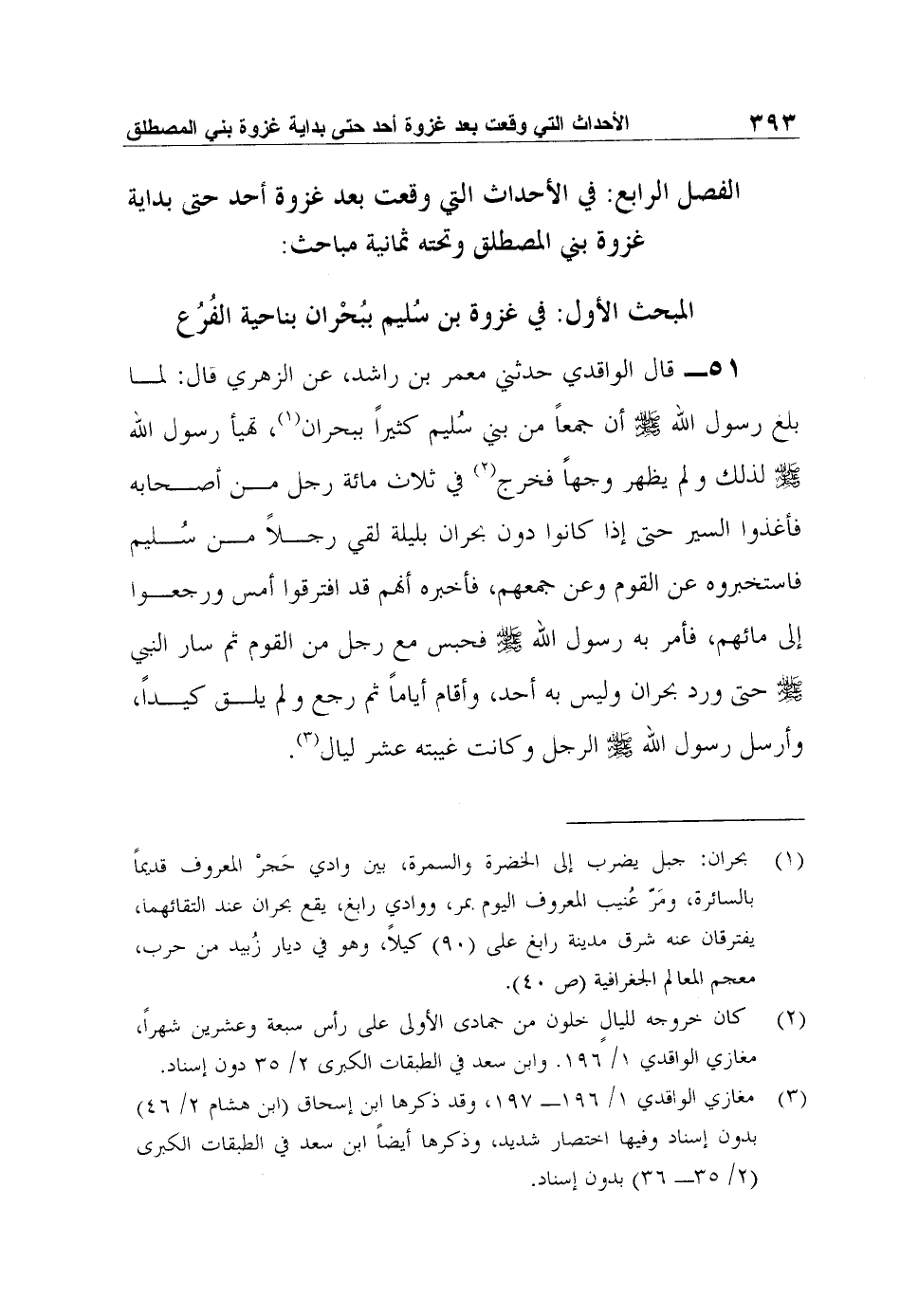 المبحث الأول: في غزوة بن سليم ببحران بناحية الفرع