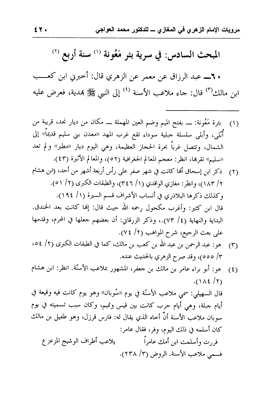 60- عبد الرزاق عن معمر عن الزهري قال: أخبرني ابن كعب ابن مالك3 قال: جاء ملاعب الأسنة4 إلى النبي صلى الله عليه وسلم بهدية، فعرض عليه