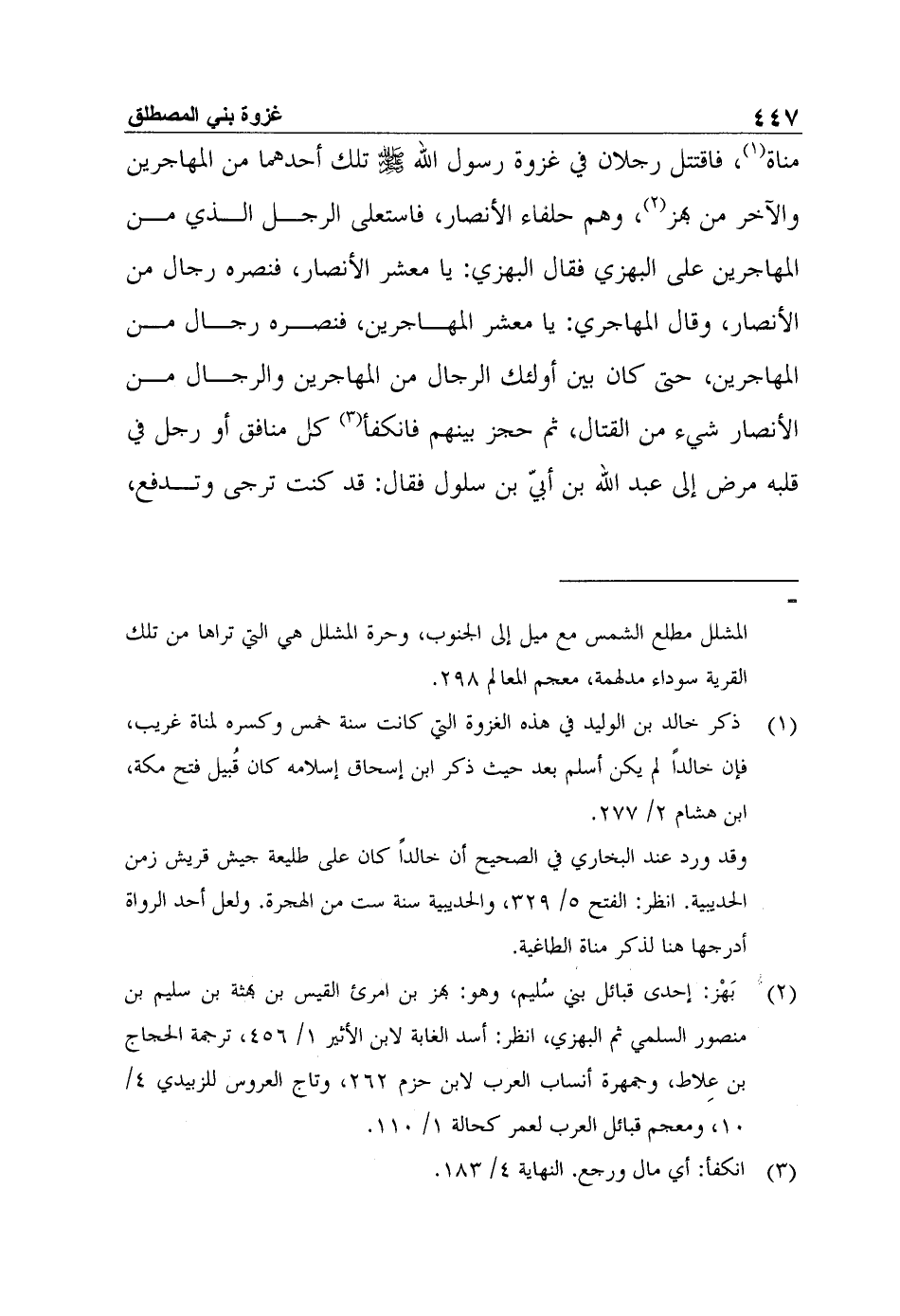 1 ذكر خالد بن الوليد في هذه الغزوة التي كانت سنة خمس وكسره لمناة غريب، فإن خالداً لم يكن أسلم بعد حيث ذكر ابن إسحاق إسلامه كان قُبيل فتح مكة، ابن هشام 2/ 277.