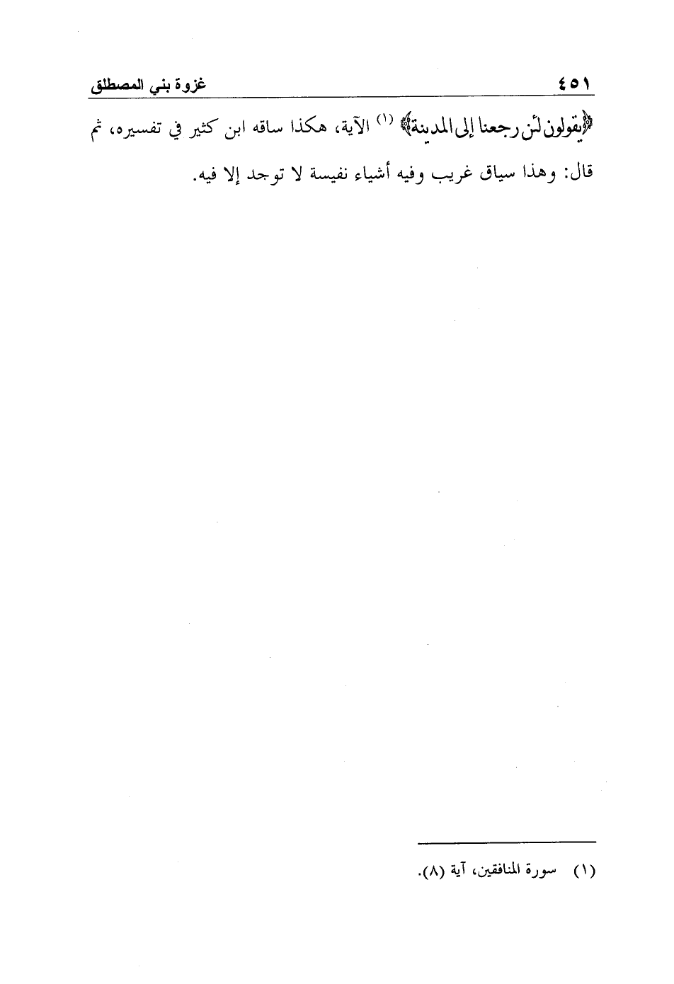 {يَقُولُونَ لَئِنْ رَجَعْنَا إِلَى الْمَدِينَةِ} 1 الآية، هكذا ساقه ابن كثير في تفسيره، ثم قال: وهذا سياق غريب وفيه أشياء نفيسة لا توجد إلا فيه.
