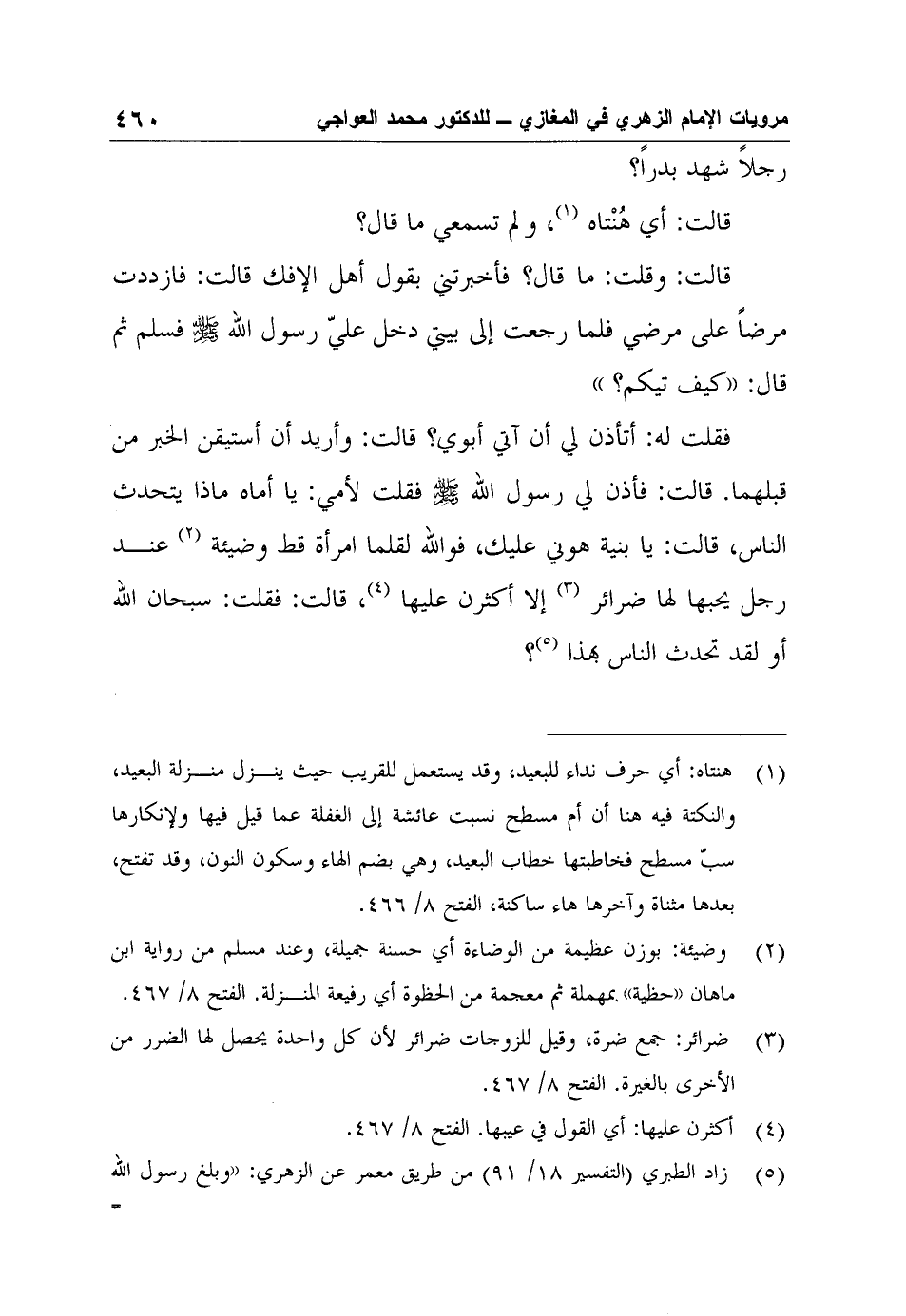 5 زاد الطبري (التفسير 18/ 91) من طريق معمر عن الزهري: "وبلغ رسول الله صلى الله عليه وسلم؟ قالت: نعم"، وفي رواية ابن هشام (عند البخاري رقم 4757) : "فقلت: وقد علم به أبي؟ قالت: نعم، قلت: ورسول الله؟ قالت: نعم، ورسول الله صلى الله عليه وسلم". الفتح 8/ 467.