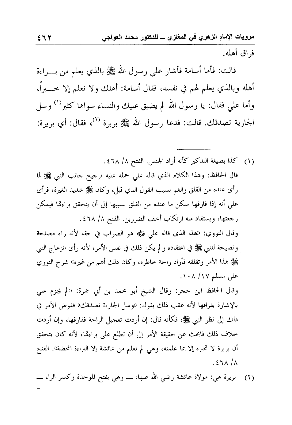 2 بريرة هي: مولاة عائشة رضي الله عنها، - وهي بفتح الموحدة وكسر الراء - الفتح 8/ 469، انظر ترجمتها في الإصابة 4/ 251- 252.