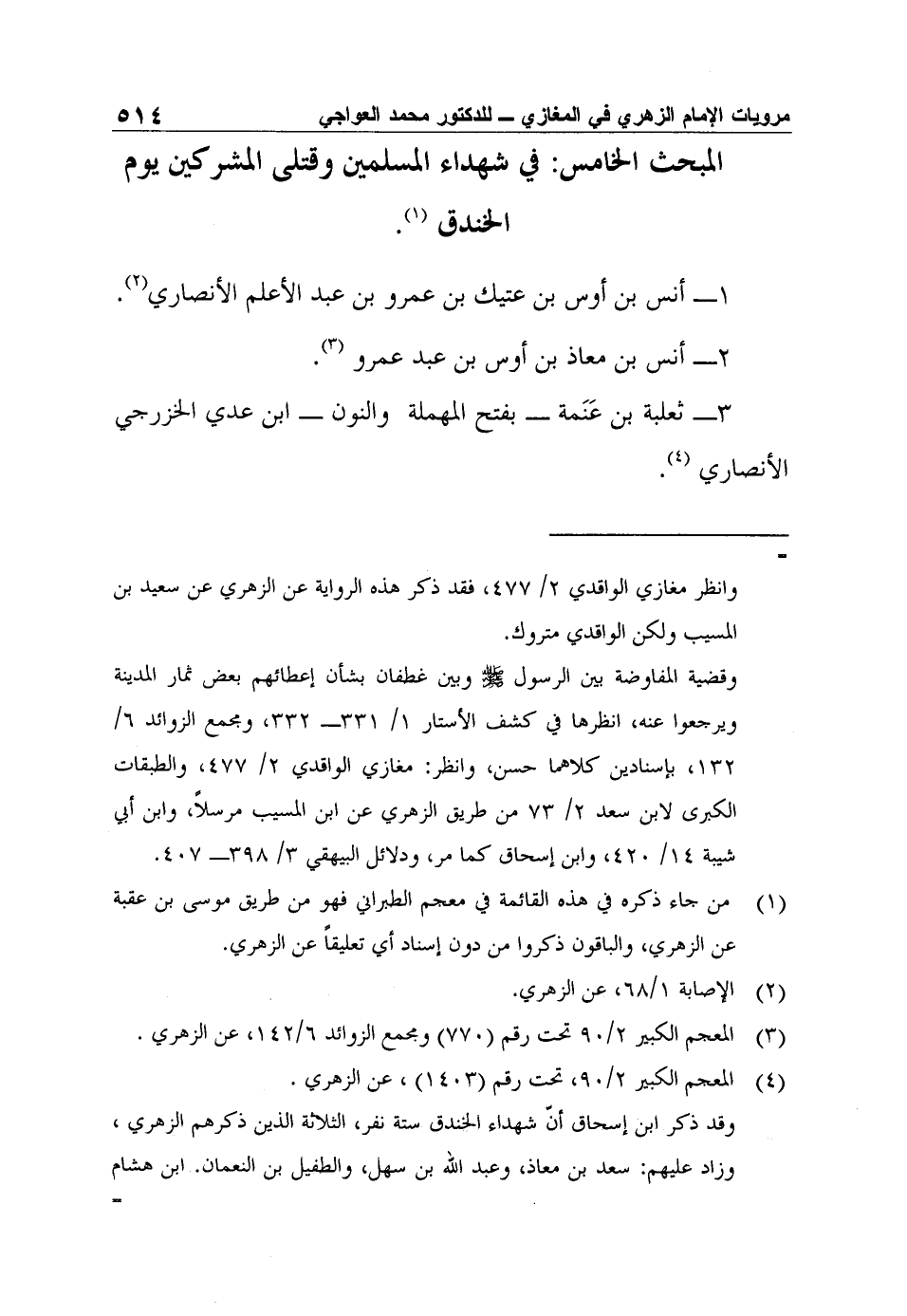 المبحث الخامس: في شهداء المسلمين وقتلى المشركين يوم الخندق1.