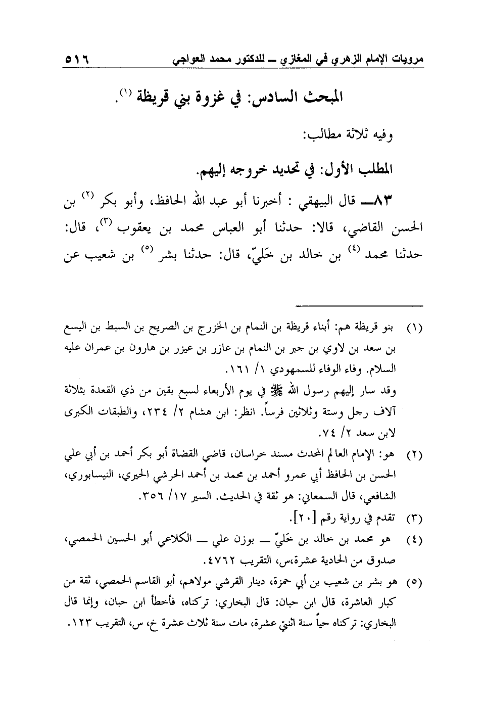 كتاب مرويات الإمام الزهري في المغازي (اسم الجزء: 1)