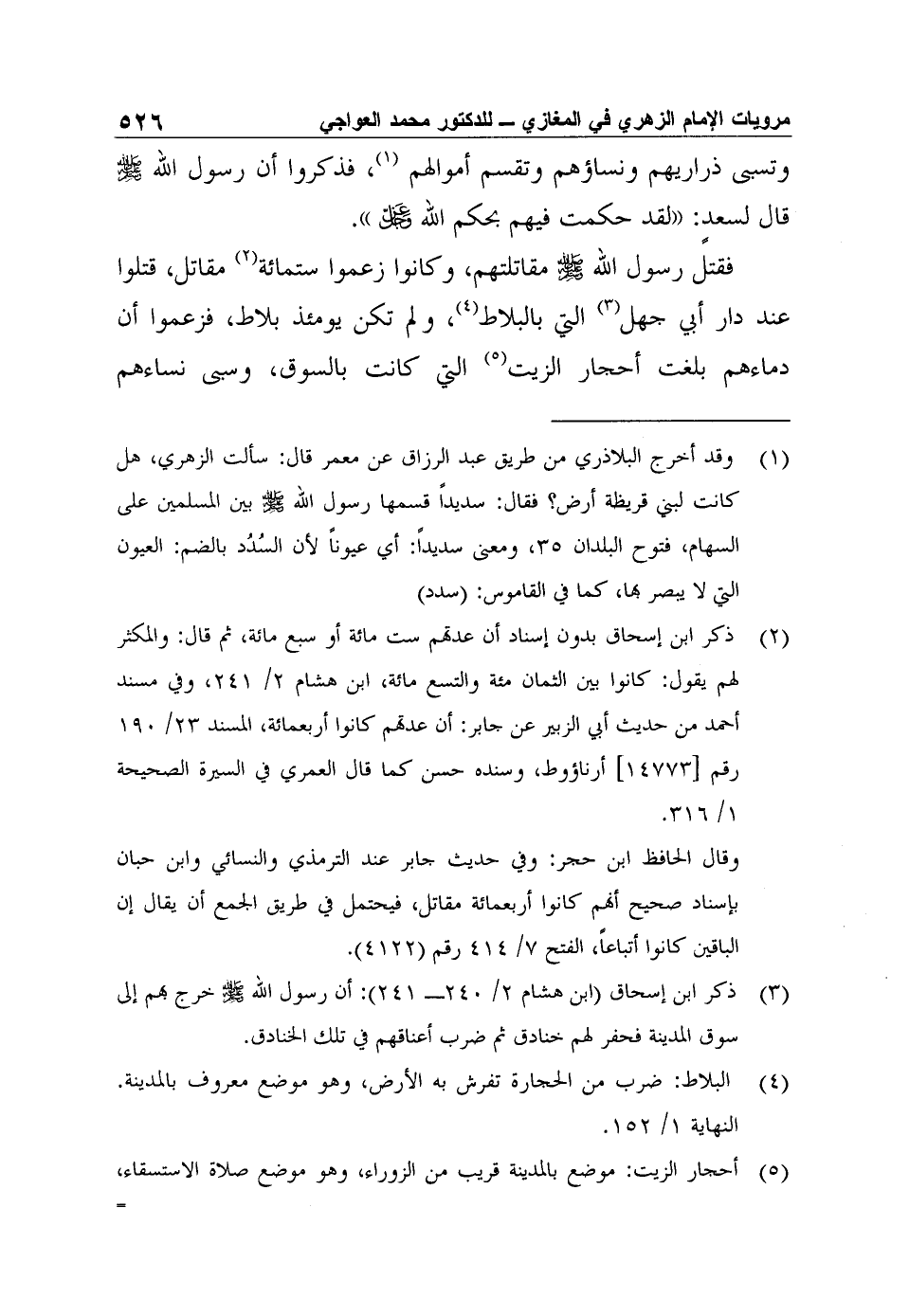 5 أحجار الزيت: موضع بالمدينة قريب من الزوراء، وهو موضع صلاة الاستسقاء، معجم البلدان 1/ 109، وهذا المكان يقع اليوم في الجهة الغربية من المسجد النبوي الشريف قرب مسجد الغمامة الذي بناه العثمانيون. انظر: الدر الثمين 237.