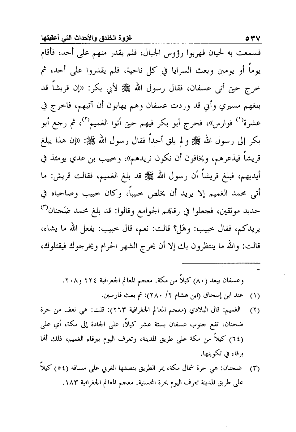 3 ضجنان: هي حرة شمال مكة، يمر الطريق بنصفها الغربي على مسافة (54) كيلاً على طريق المدينة تعرف اليوم بحرة المحسنية. معجم المعالم الجغرافية 183.