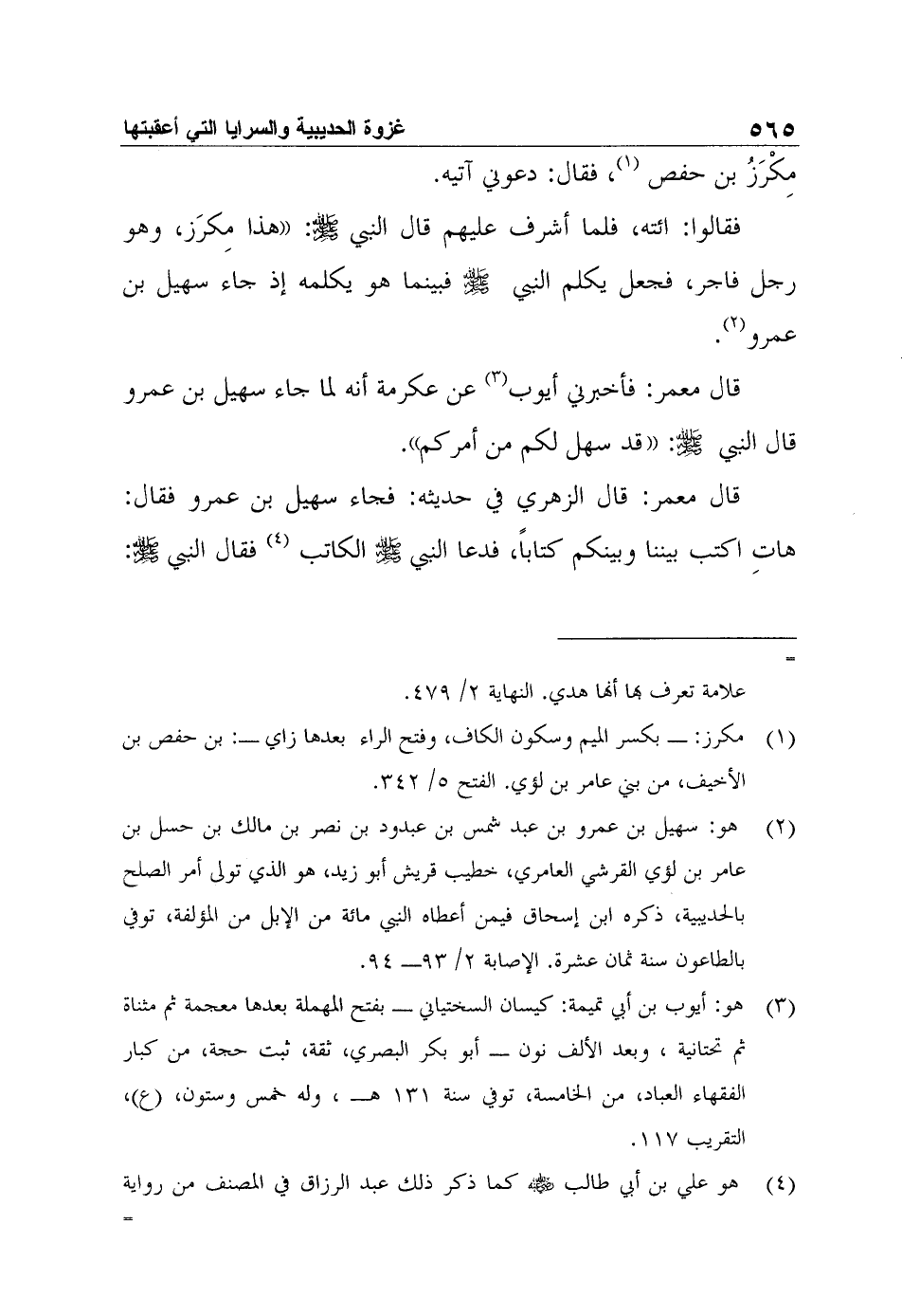 2 هو: سهيل بن عمرو بن عبد شمس بن عبدود بن نصر بن مالك بن حسل بن عامر بن لؤي القرشي العامري، خطيب قريش أبو زيد، هو الذي تولى أمر الصلح بالحديبية، ذكره ابن إسحاق فيمن أعطاه النبي مائة من الإبل من المؤلفة، توفي بالطاعون سنة ثمان عشرة. الإصابة 2/ 93- 94.