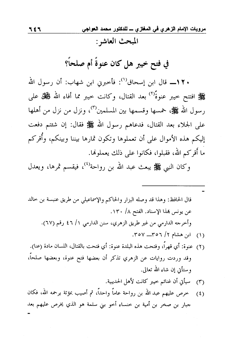 المبحث العاشر: في فتح خيبر هل كان عنوةً أم صلحاً؟