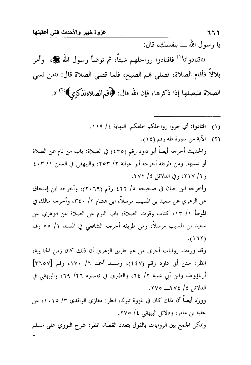 والحديث أخرجه أيضاً أبو داود رقم (435) في الصلاة: باب من نام عن الصلاة أو نسيها. ومن طريقه أخرجه أبو عوانة 2/ 253، والبيهقي في السنن 1/ 403 و2/ 217، وفي الدلائل 4/ 272.