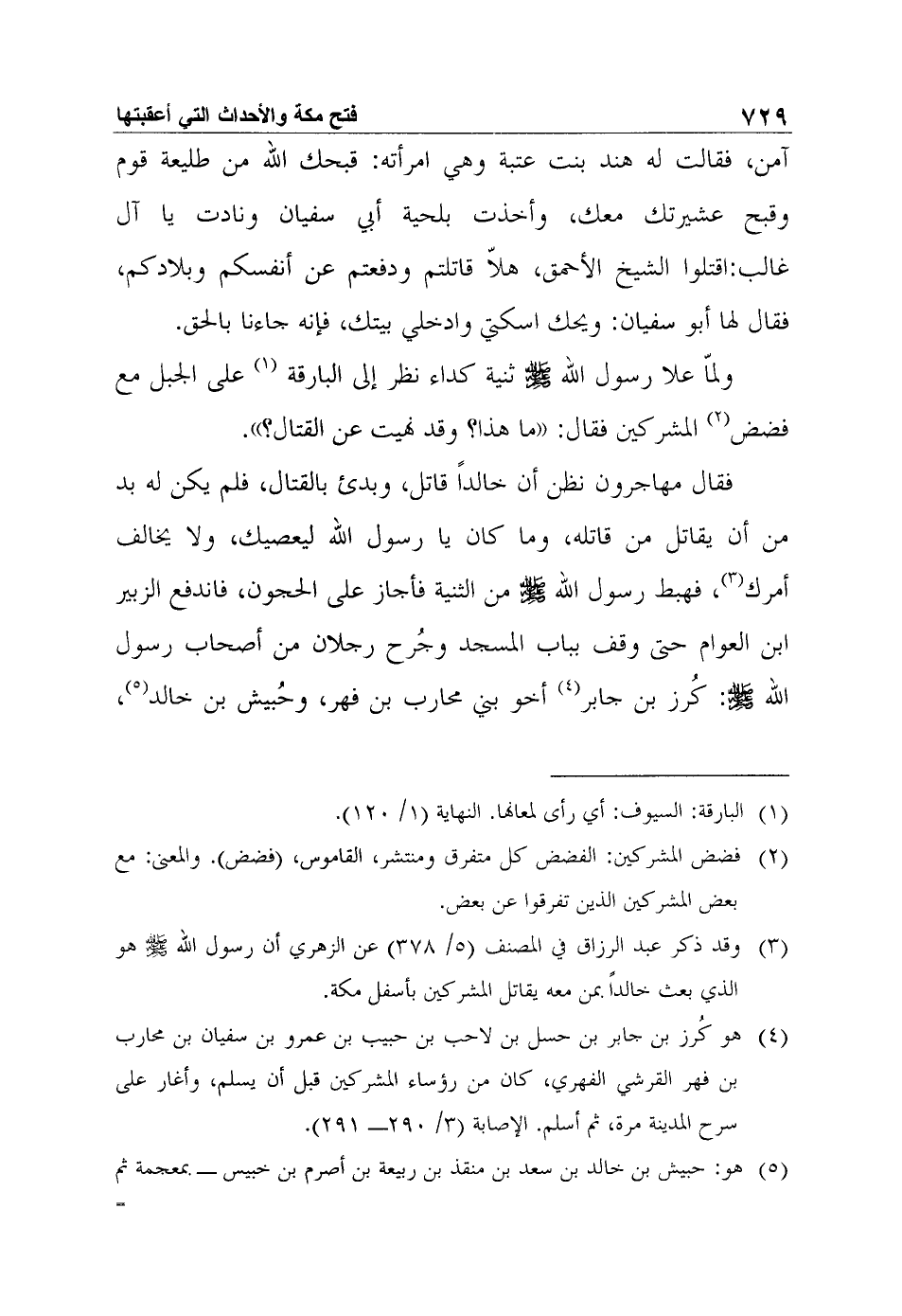 4 هو كُرز بن جابر بن حسل بن لاحب بن حبيب بن عمرو بن سفيان بن محارب بن فهر القرشي الفهري، كان من رؤساء المشركين قبل أن يسلم، وأغار على سرح المدينة مرة، ثم أسلم. الإصابة (3/ 290- 291) .