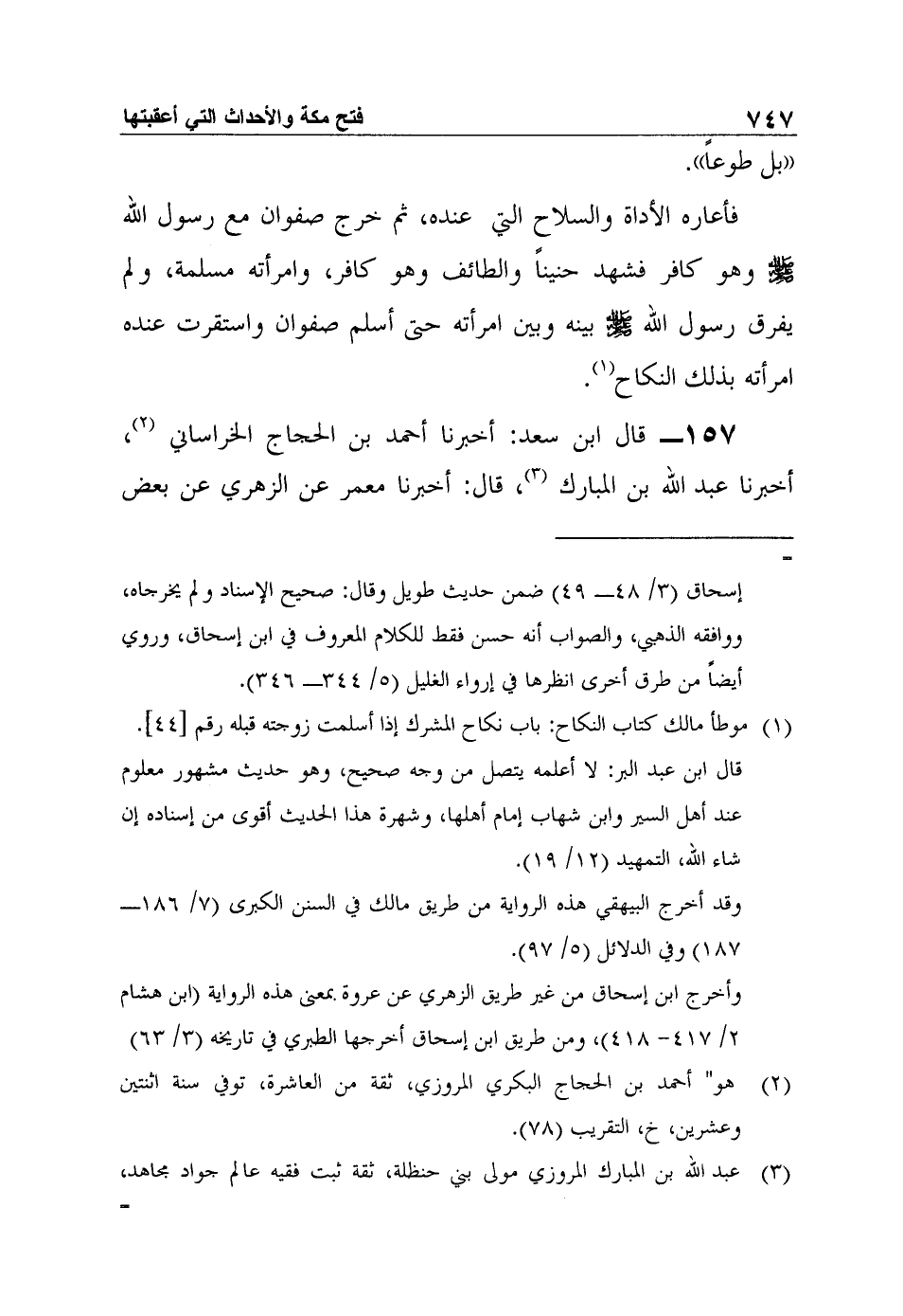 وقد أخرج البيهقي هذه الرواية من طريق مالك في السنن الكبرى (7/ 186- 187) وفي الدلائل (5/ 97) .