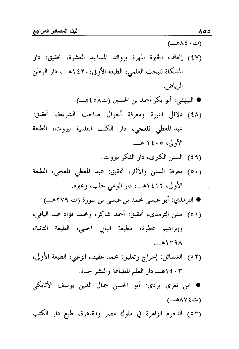 إتحاف الخيرة المهرة بزوائد المسانيد العشرة، تحقيق: دار المشكاة للبحث العلمي، الطبعة الأولى،1420هـ، دار الوطن الرياض.