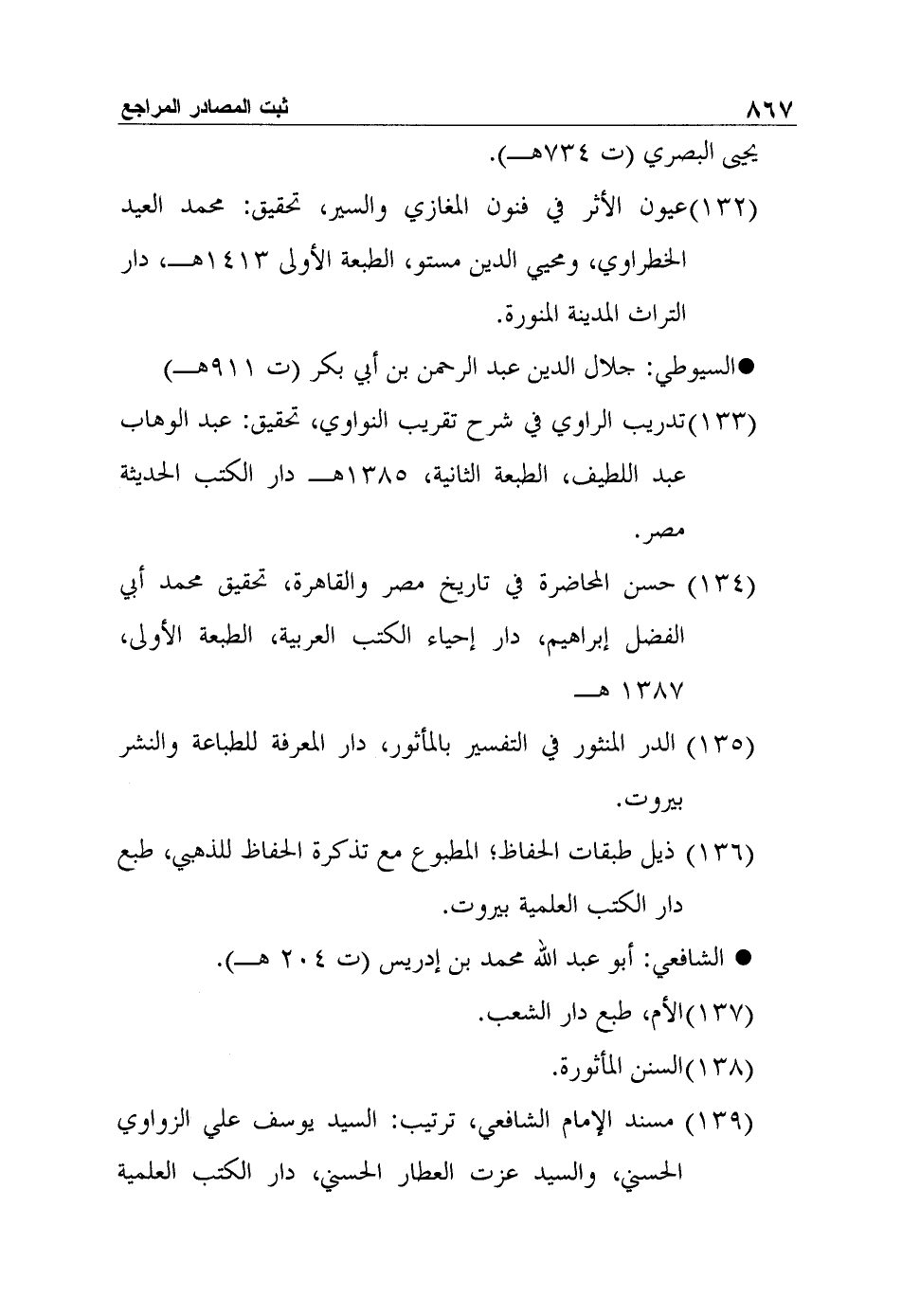 مسند الإمام الشافعي، ترتيب: السيد يوسف علي الزواوي الحسني، والسيد عزت العطار الحسني، دار الكتب العلمية