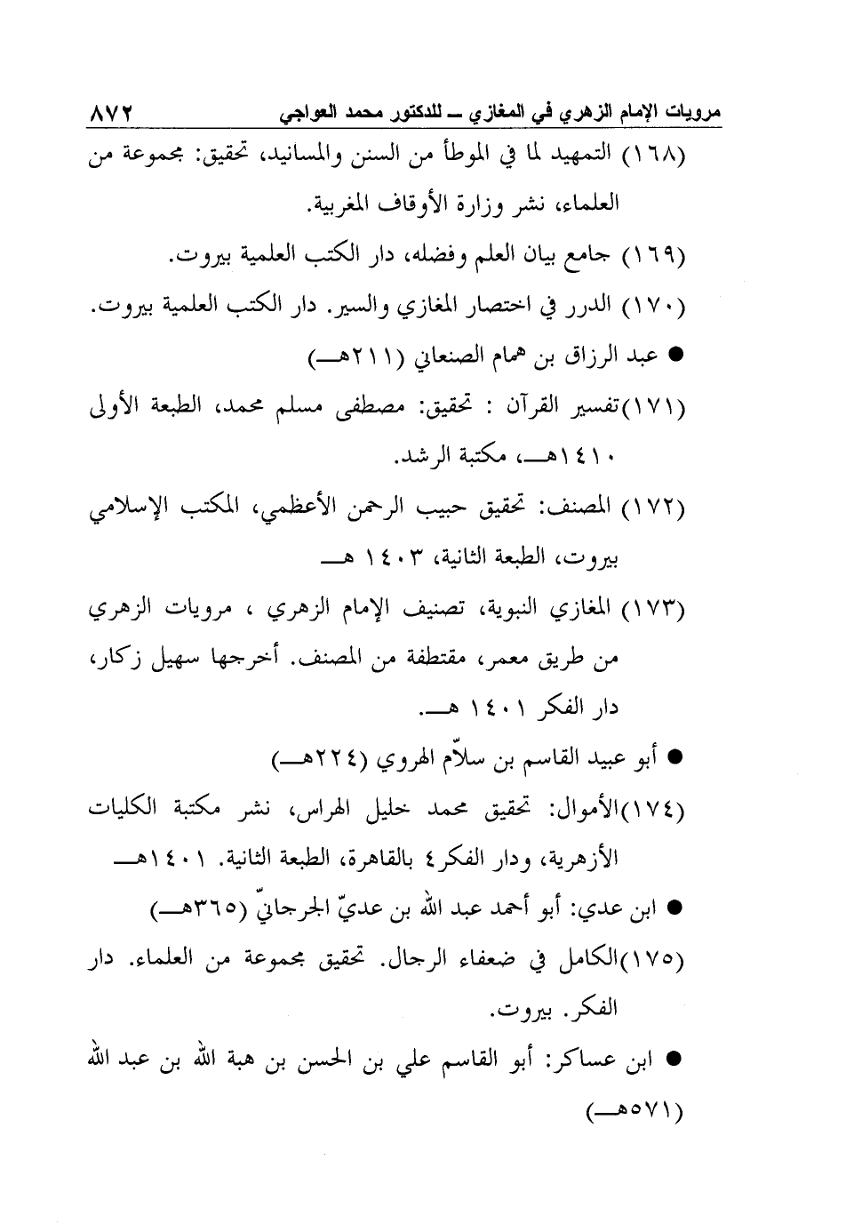 المغازي النبوية، تصنيف الإمام الزهري، مرويات الزهري من طريق معمر، مقتطفة من المصنف. أخرجها سهيل زكار، دار الفكر 1401 هـ.