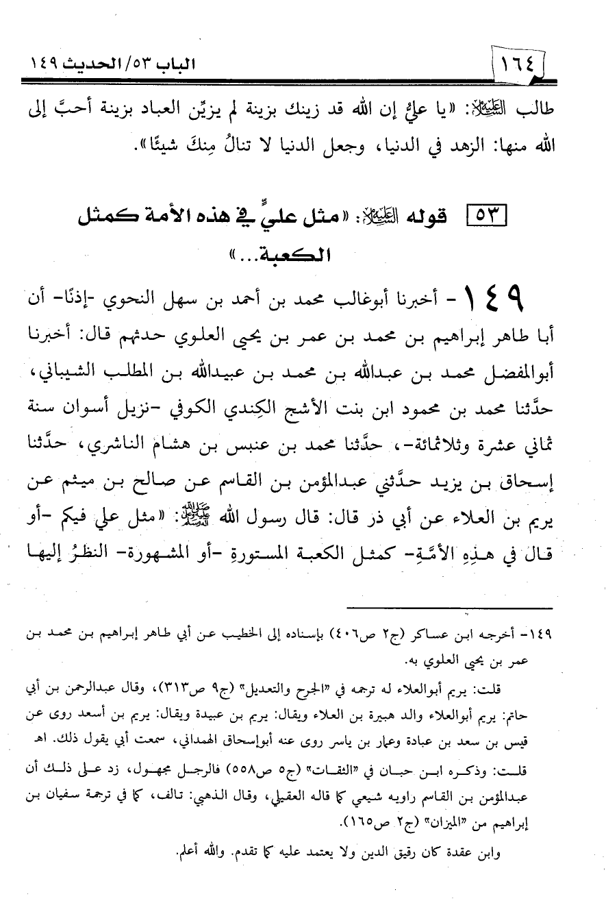 [53] قوله عليه السلام: ((مثل علي في هذه الأمة كمثل الكعبة ... ))