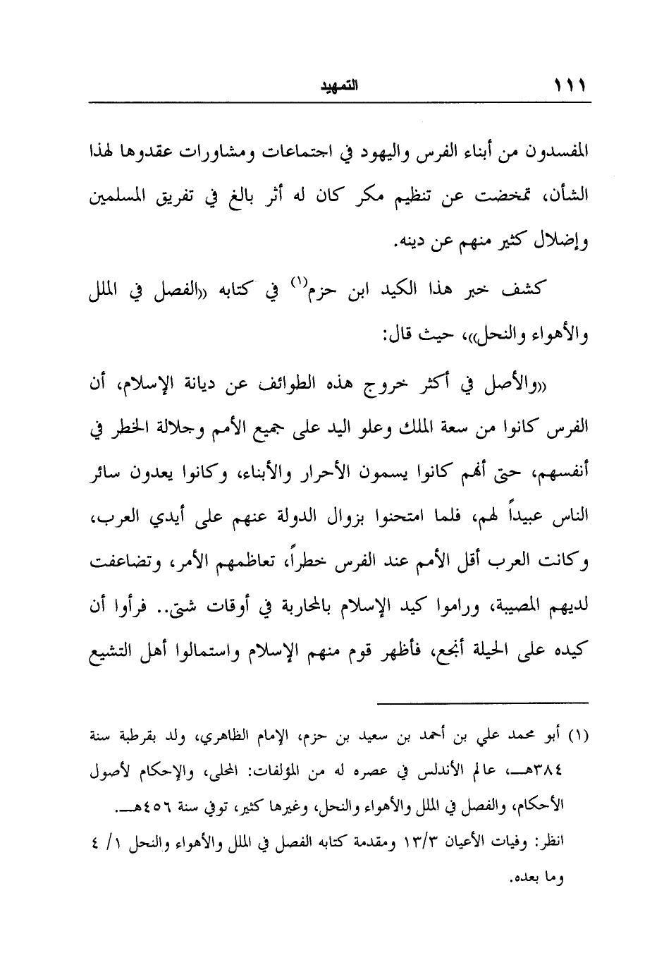 انظر: وفيات الأعيان 3/13 ومقدمة كتابه الفصل في الملل والأهواء والنحل 1/ 4 وما بعده.