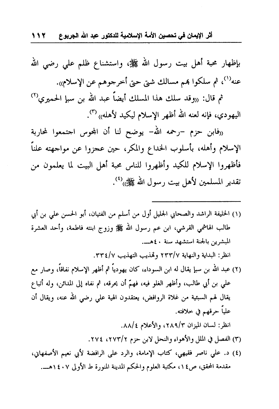 "فابن حزم -رحمه الله- يوضح لنا أن المجوس اجتمعوا لمحاربة الإسلام وأهله، بأسلوب الخداع والمكر، حين عجزوا عن مواجهته علناً فأظهروا الإسلام للكيد وأظهروا للناس محبة أهل البيت لما يعلمون من تقدير المسلمين لأهل بيت رسول الله صلى الله عليه وسلم"4.