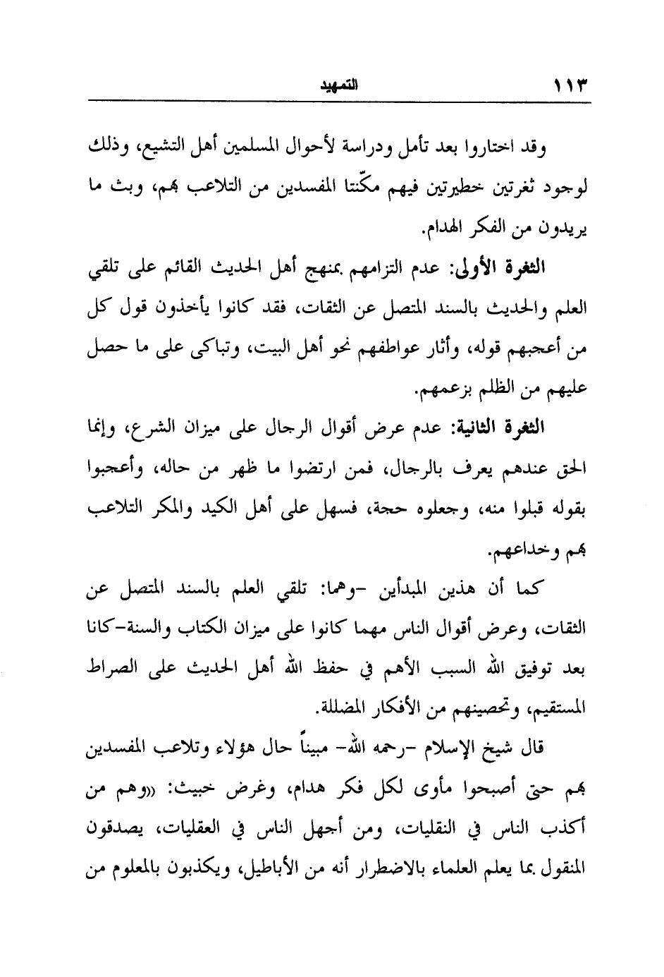 كما أن هذين المبدأين -وهما: تلقي العلم بالسند المتصل عن الثقات، وعرض أقوال الناس مهما كانوا على ميزان الكتاب والسنة-كانا بعد توفيق الله السبب الأهم في حفظ الله أهل الحديث على الصراط المستقيم، وتحصينهم من الأفكار المضللة.