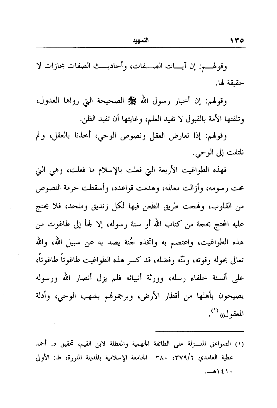 1 الصواعق المنزلة على الطائفة الجهمية والمعطلة لابن القيم، تحقيق د. أحمد عطية الغامدي 2/379، 380 الجامعة الإسلامية بالمدينة المنورة، ط: الأولى 1410هـ.