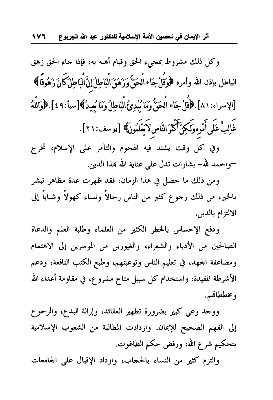 كتاب أثر الإيمان في تحصين الأمة الإسلامية ضد الأفكار الهدامة