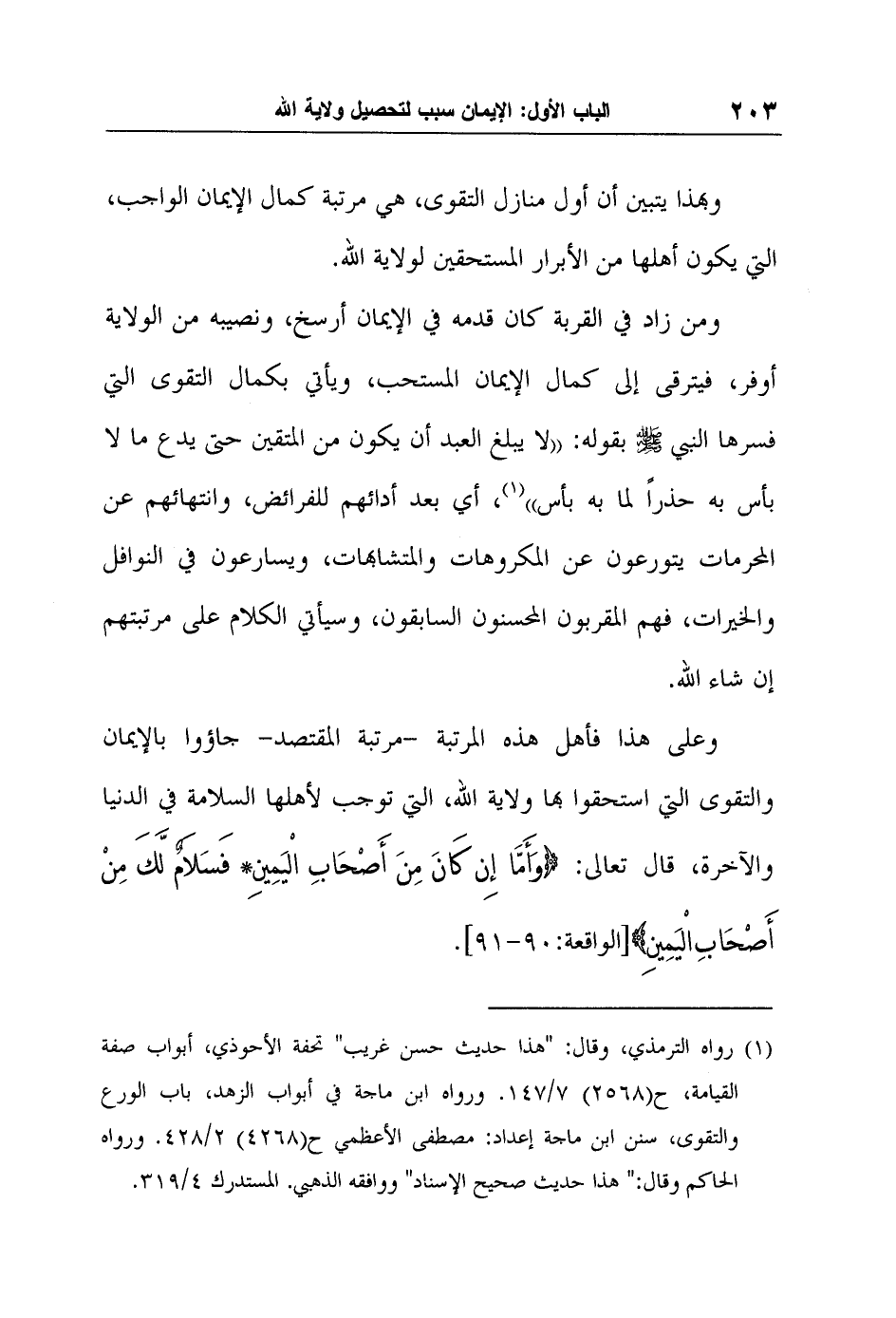 وبهذا يتبين أن أول منازل التقوى، هي مرتبة كمال الإيمان الواجب، التي يكون أهلها من الأبرار المستحقين لولاية الله.
