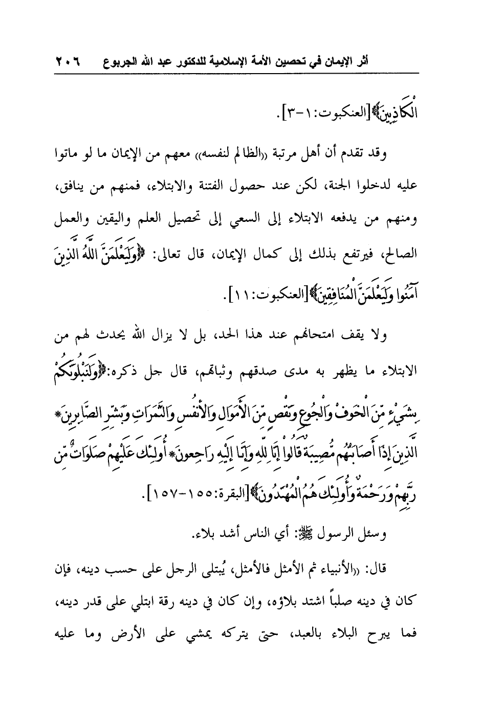 كتاب أثر الإيمان في تحصين الأمة الإسلامية ضد الأفكار الهدامة