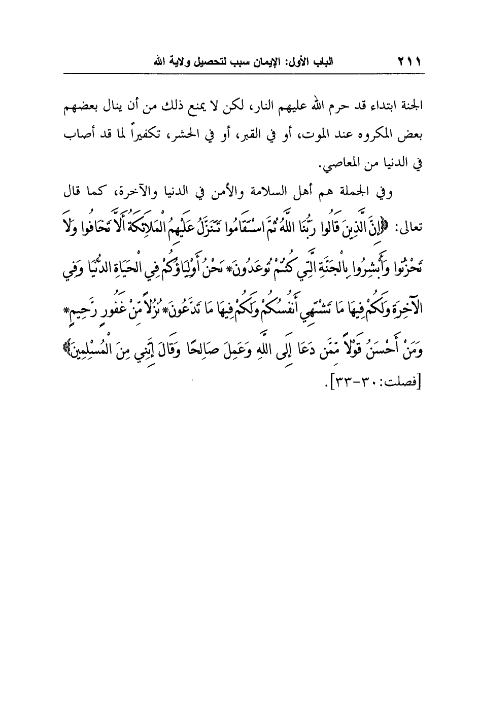 وفي الجملة هم أهل السلامة والأمن في الدنيا والآخرة، كما قال تعالى: {إِنَّ الَّذِينَ قَالُوا رَبُّنَا اللَّهُ ثُمَّ اسْتَقَامُوا تَتَنَزَّلُ عَلَيْهِمُ الْمَلائِكَةُ أَلاَّ تَخَافُوا وَلا تَحْزَنُوا وَأَبْشِرُوا بِالْجَنَّةِ الَّتِي كُنْتُمْ تُوعَدُونَ نَحْنُ أَوْلِيَاؤُكُمْ فِي الْحَيَاةِ الدُّنْيَا وَفِي الآخِرَةِ وَلَكُمْ فِيهَا مَا تَشْتَهِي أَنْفُسُكُمْ وَلَكُمْ فِيهَا مَا تَدَّعُونَ نُزُلاً مِنْ غَفُورٍ رَحِيمٍ وَمَنْ أَحْسَنُ قَوْلاً مِمَّنْ دَعَا إِلَى اللَّهِ وَعَمِلَ صَالِحاً وَقَالَ إِنَّنِي مِنَ الْمُسْلِمِينَ} [فصلت:30-33] .
