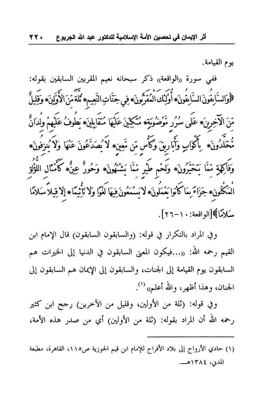 1 حادي الأرواح إلى بلاد الأفراح للإمام ابن قيم الجوزية ص115، القاهرة، مطبعة المدني، 1384هـ.