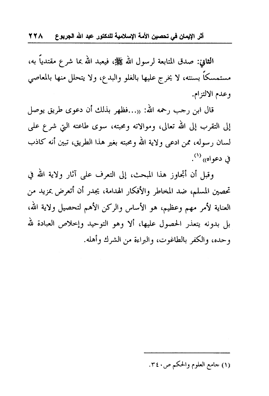 كتاب أثر الإيمان في تحصين الأمة الإسلامية ضد الأفكار الهدامة