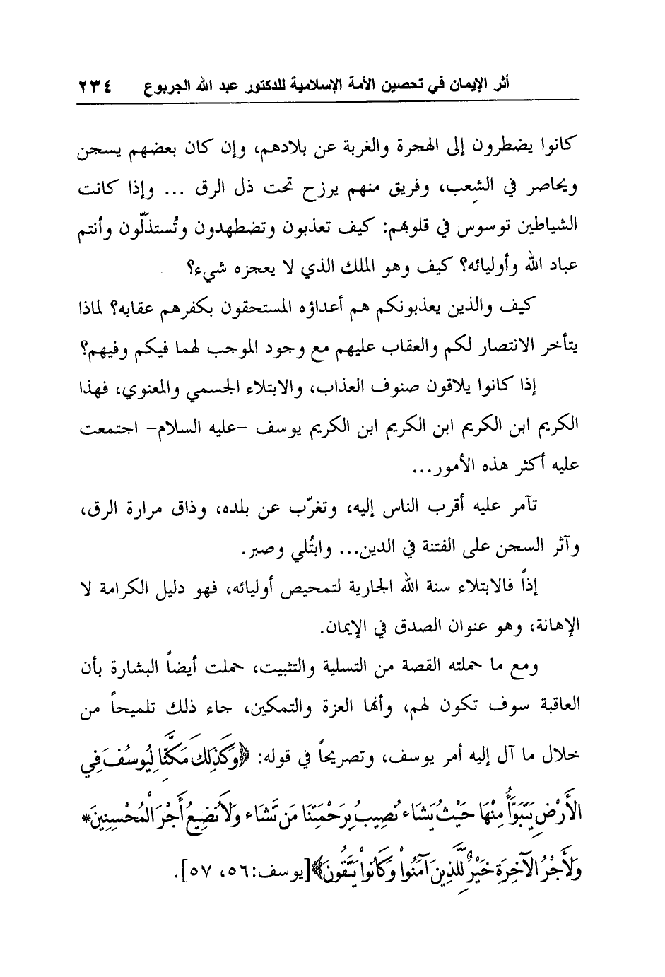 كتاب أثر الإيمان في تحصين الأمة الإسلامية ضد الأفكار الهدامة
