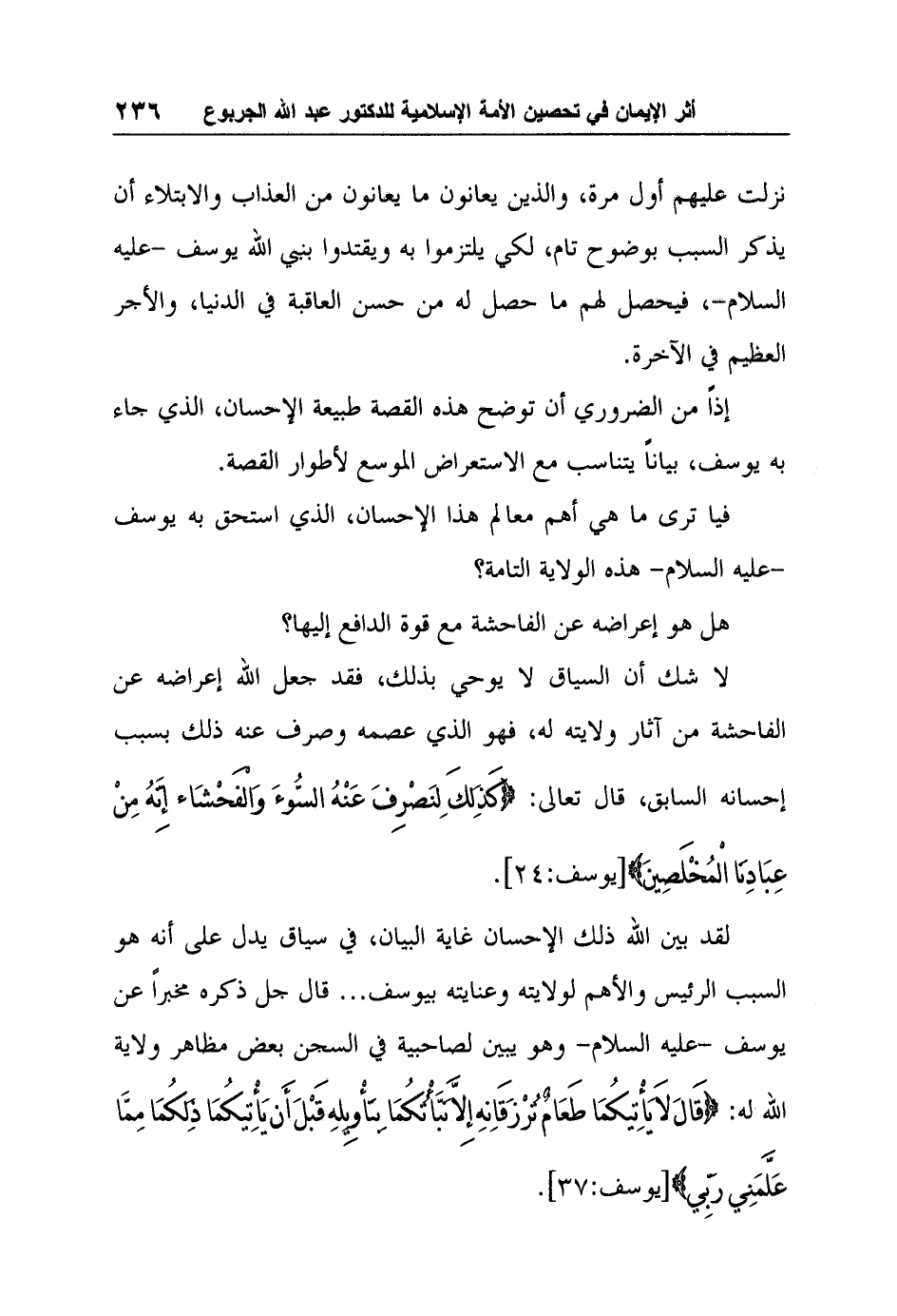 إذاً من الضروري أن توضح هذه القصة طبيعة الإحسان، الذي جاء به يوسف، بياناً يتناسب مع الاستعراض الموسع لأطوار القصة.