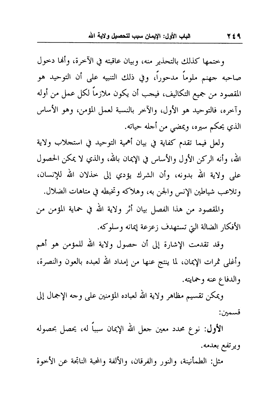 والمقصود من هذا الفصل بيان أثر ولاية الله في حماية المؤمن من الأفكار الضالة التي تستهدف زعزعة إيمانه وسلوكه.