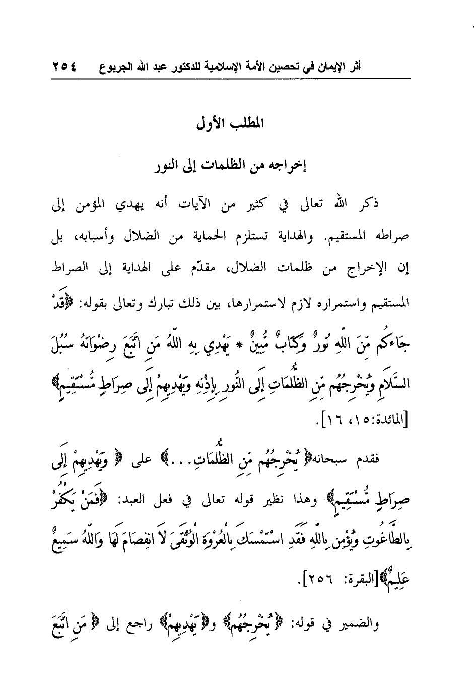 المطلب الأول: إخراجه من الظلمات إلى النور
