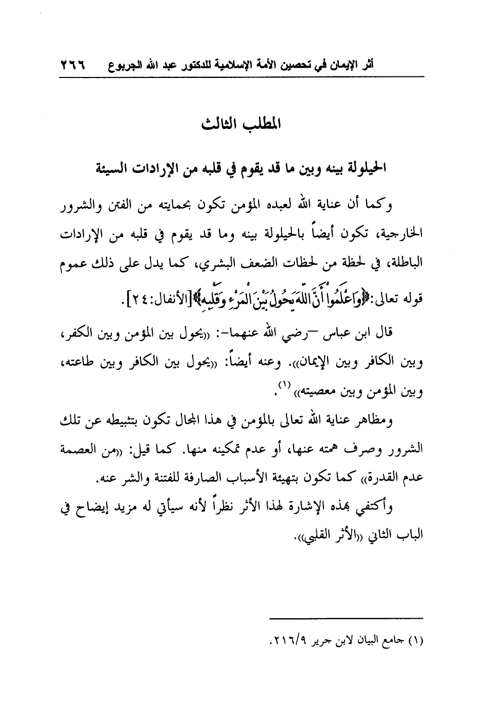المطلب الثالث: الحيلولة بينه وبين ما قد يقوم في قلبه من الإرادات السيئة