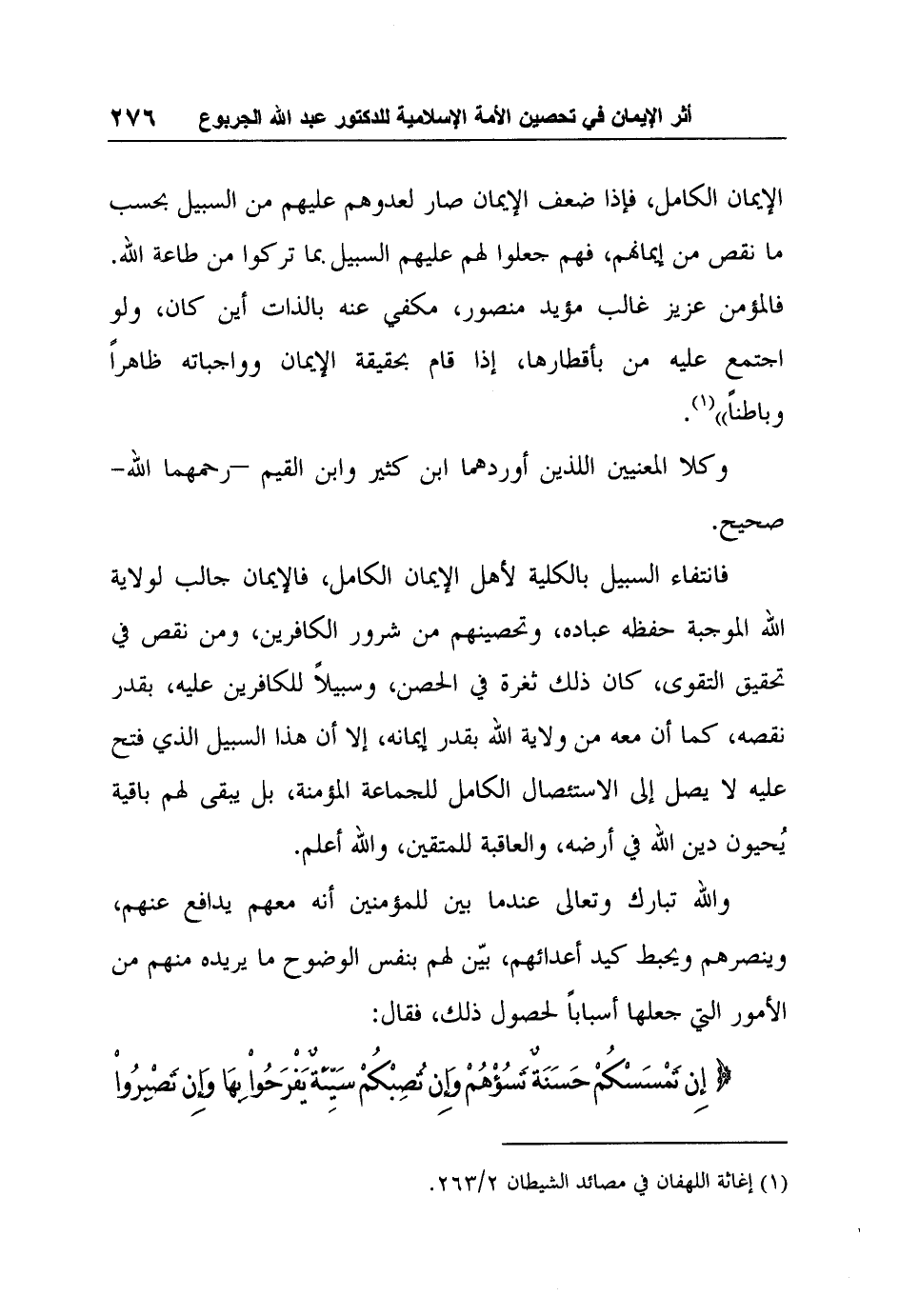 1 إغاثة اللهفان في مصائد الشيطان 2/263.