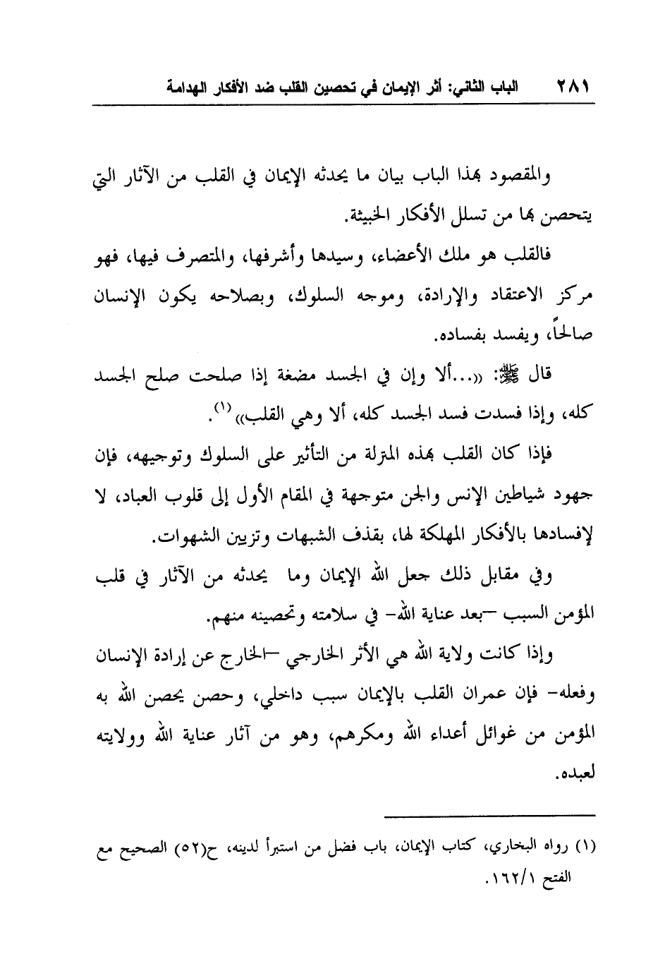 الباب الثاني: أثر الإيمان في تحصين القلب ضد الأفكار الهدامة " الأثر القلبي "