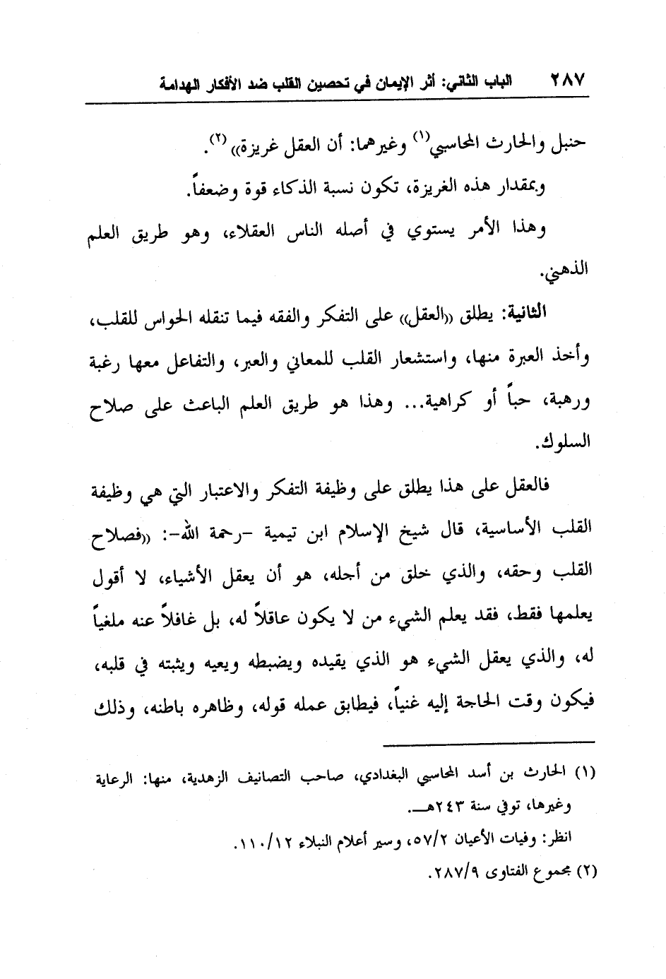حنبل والحارث المحاسبي1 وغيرهما: أن العقل غريزة"2.