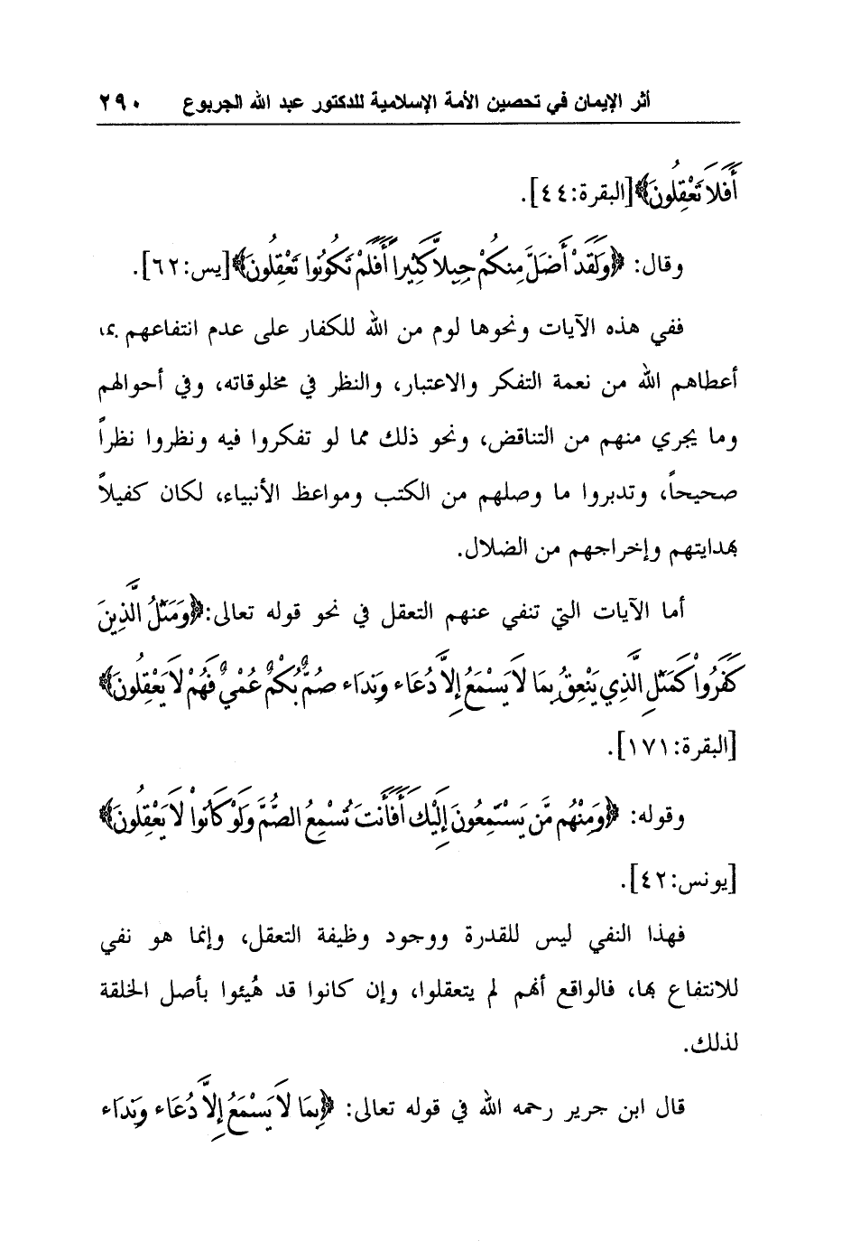 أَأفَلا تَعْقِلُونَ} [البقرة:44] .وقال: {وَلَقَدْ أَضَلَّ مِنْكُمْ جِبِلاًّ كَثِيراً أَفَلَمْ تَكُونُوا تَعْقِلُونَ} [يس:62] .